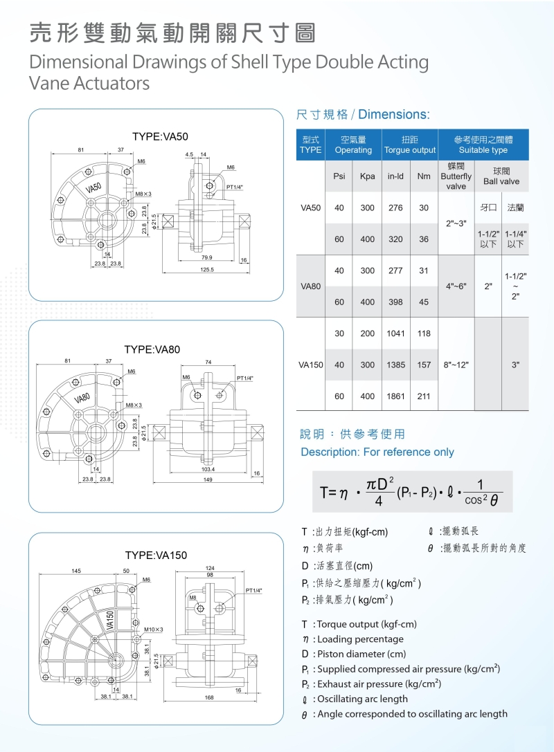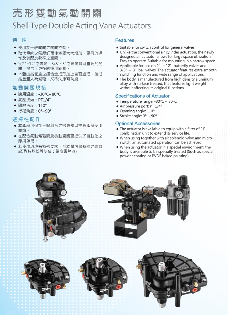 VA50 壳形雙動氣動開關 壳形氣動開關:用於一般閥門之開關控制、取代傳統氣壓缸...