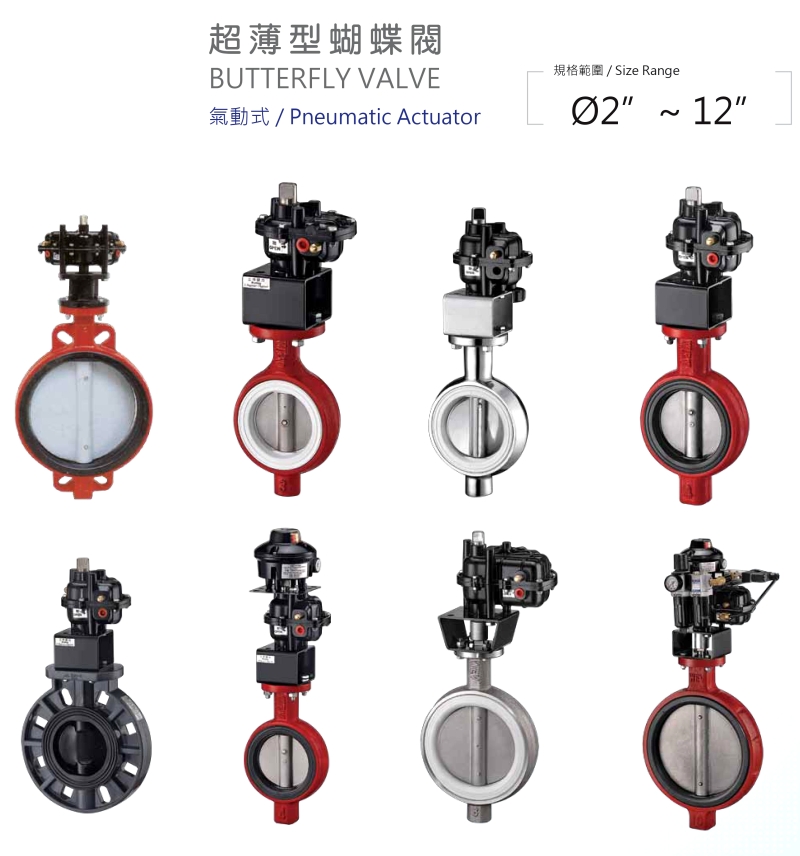 蝶閥、氣動執行器、二合一開關閥顯示器等,提供客製化生產的服務。